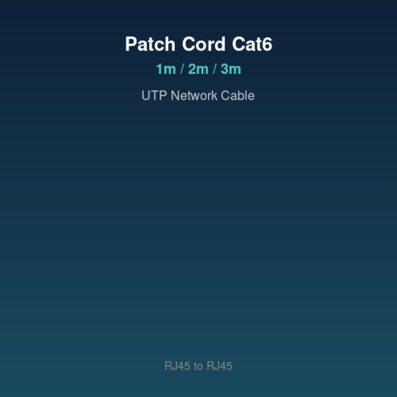 Cat6 UTP პაჩ კორდი RJ45 კონექტორებით. სიგძე: 1მ/2მ/3მ (მიუთითეთ). Gold-plated კონტაქტები, Snagless დიზაინი, Gigabit მხარდაჭერა.