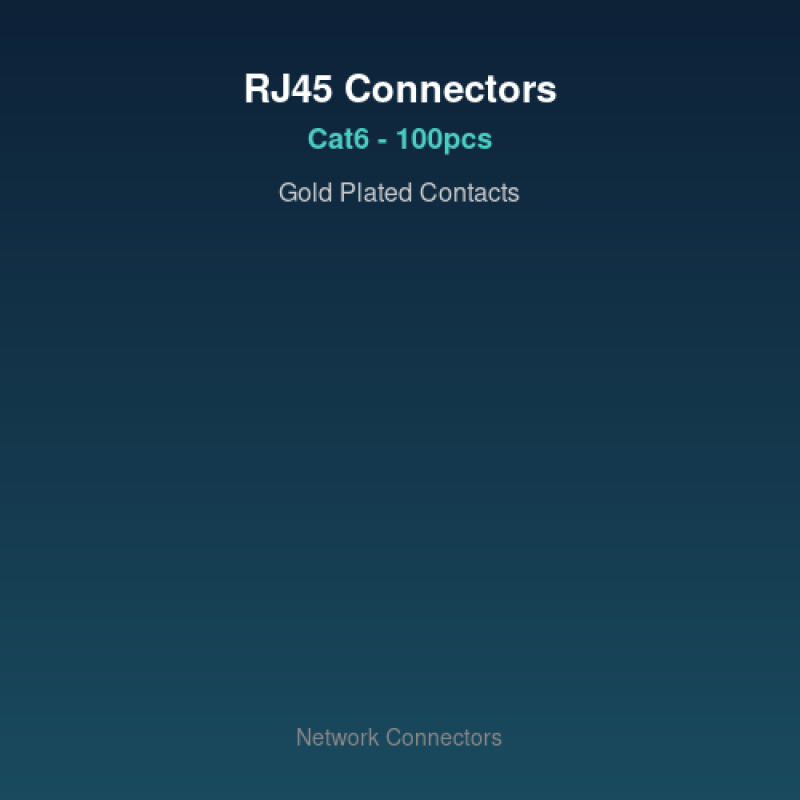RJ45 Cat6 კონექტორები 100 ცალიანი პაკეტი. Gold-plated კონტაქტები, 8P8C, 3-prong დიზაინი. Cat5e/Cat6 კაბელებისთვის, კრიმპინგის ხელსაწყოთი.